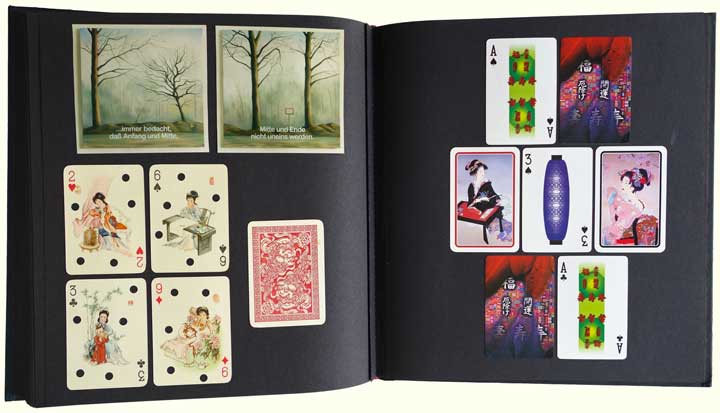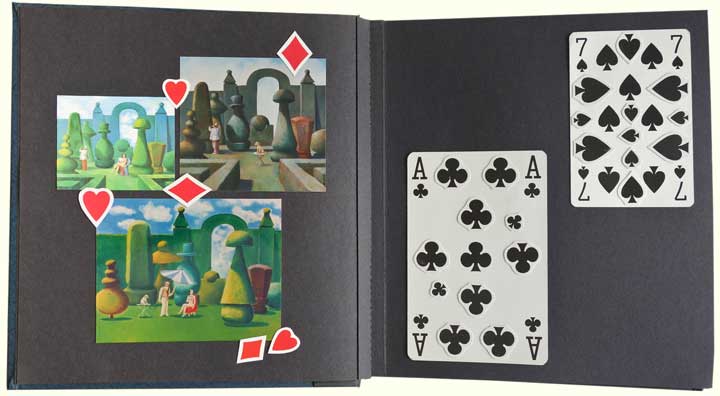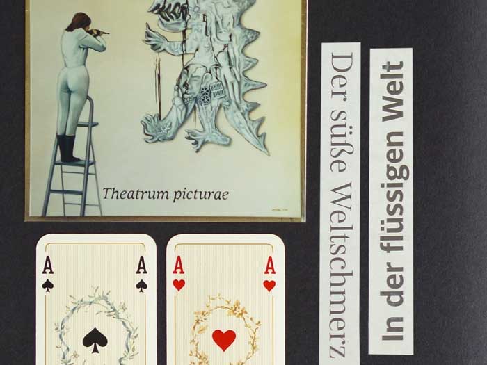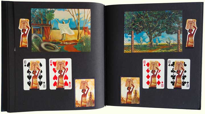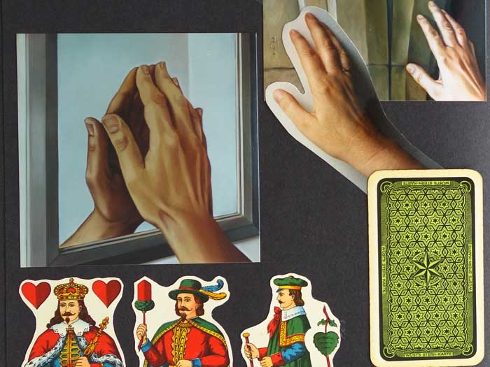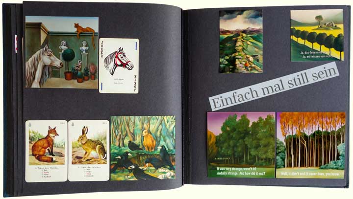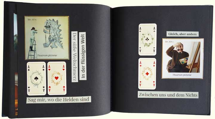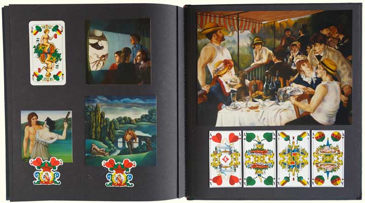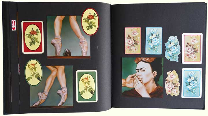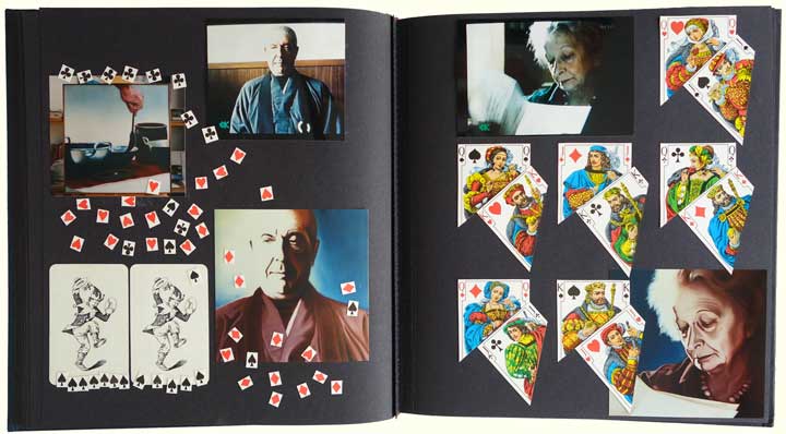 Kiedy ok. 1995 roku planowałam założyć album ze zdjęciami Wojtka obrazów, nie robiłam jeszcze kolaży z kart. Gdy po wielu latach, w 2021, wpadł mi w ręce tamten nieskończony a szybko zapomniany pomysł, z przyjemnością uzupełniłam go niewykorzystanymi kartami. |