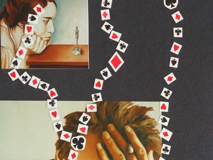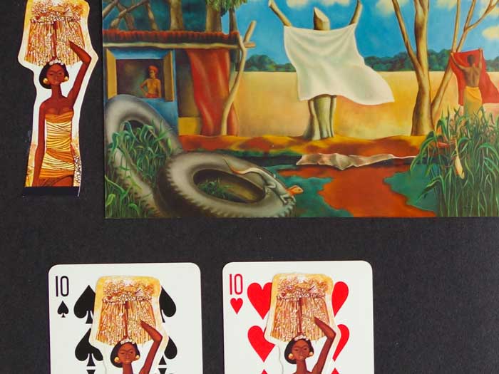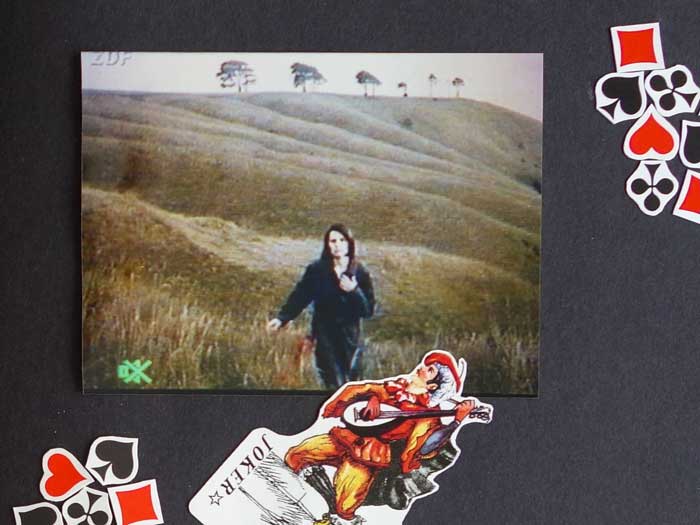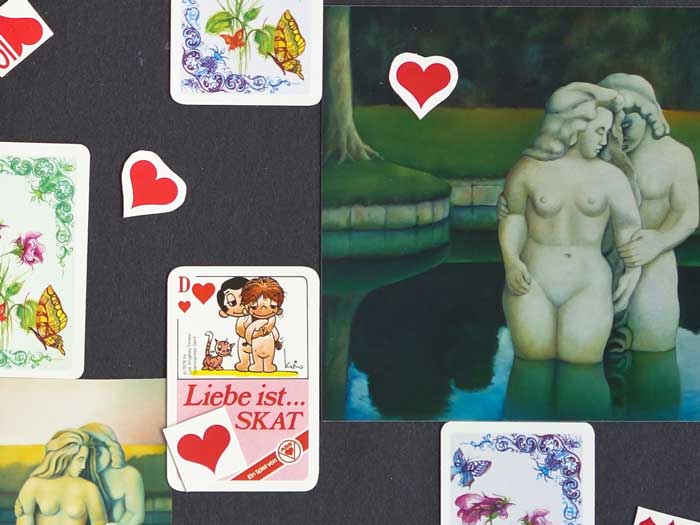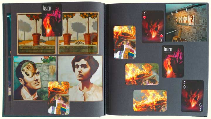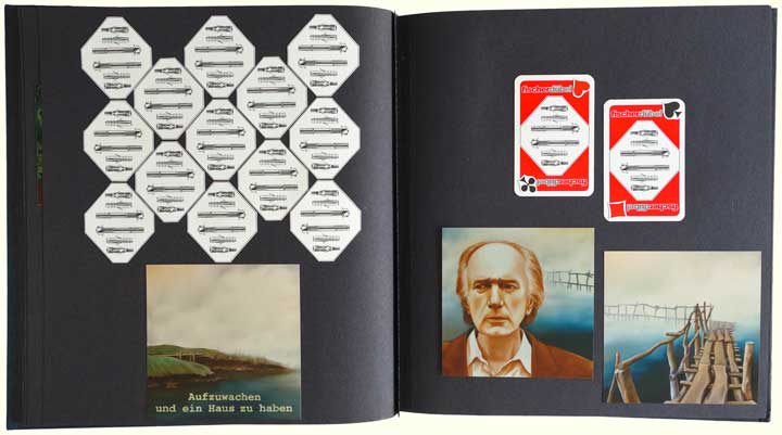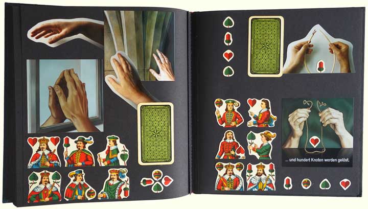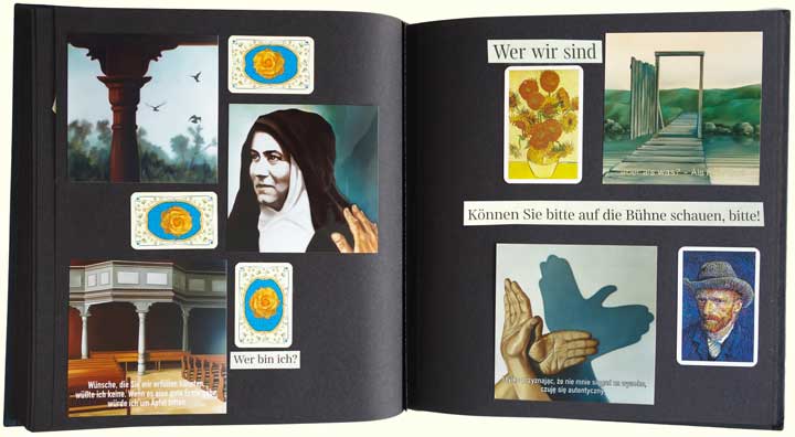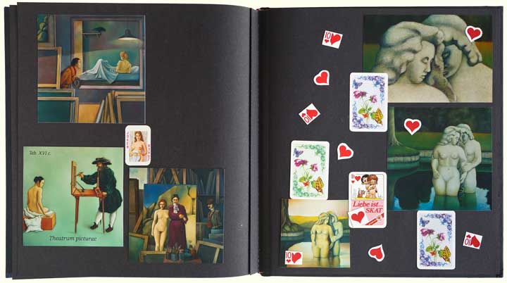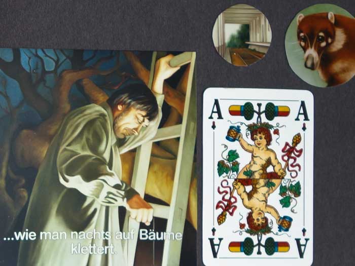 Kiedy ok. 1995 roku planowałam założyć album ze zdjęciami Wojtka obrazów, nie robiłam jeszcze kolaży z kart. Gdy po wielu latach, w 2021, wpadł mi w ręce tamten nieskończony a szybko zapomniany pomysł, z przyjemnością uzupełniłam go niewykorzystanymi kartami. |