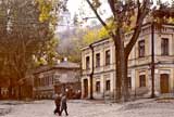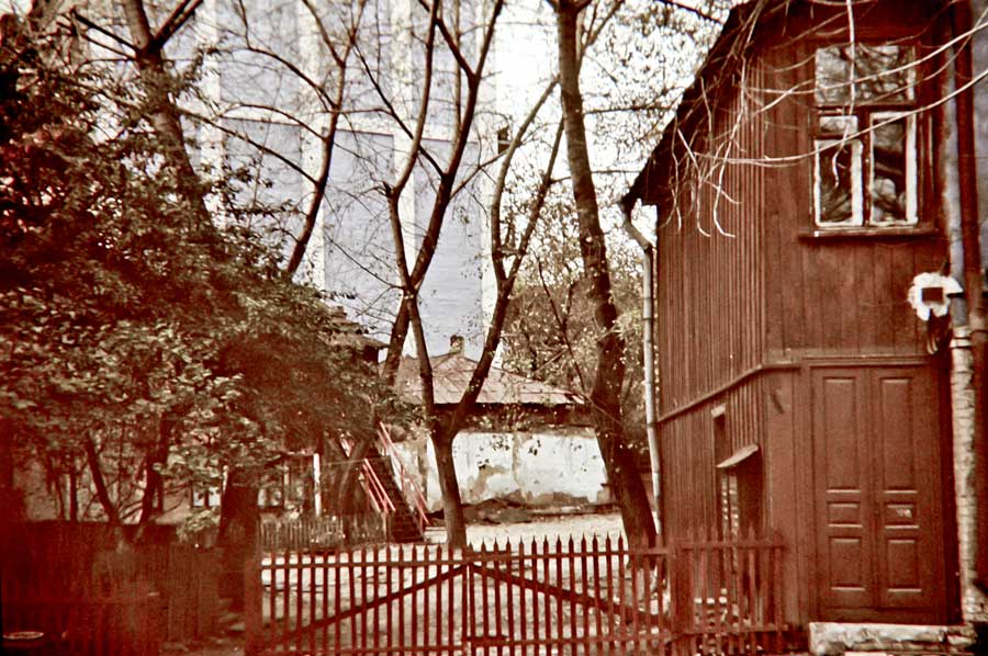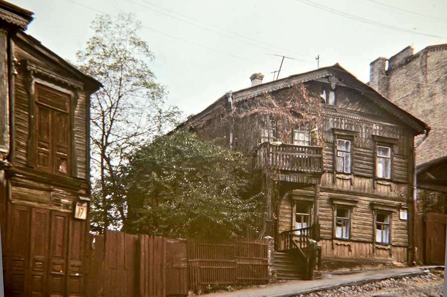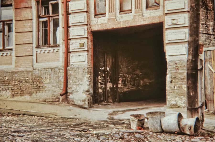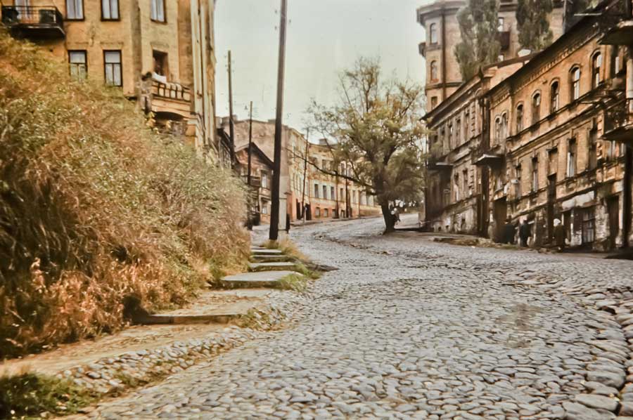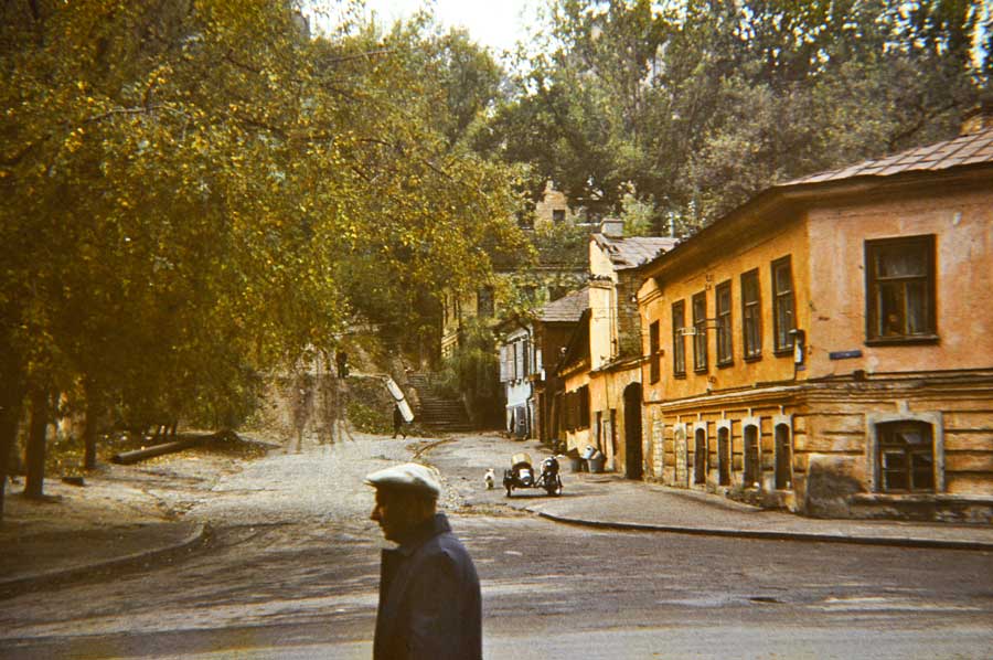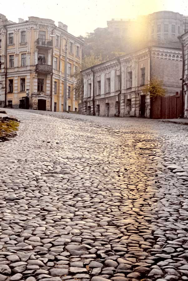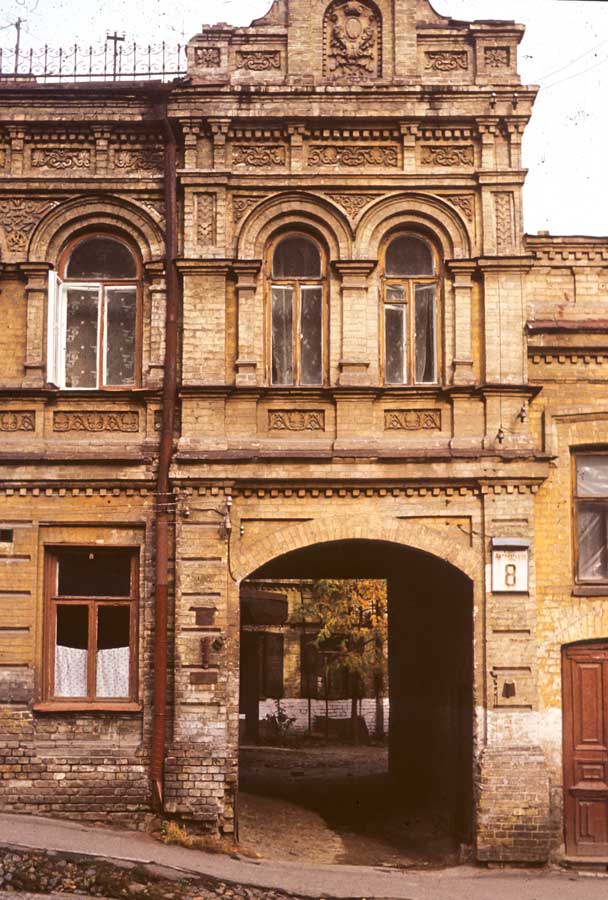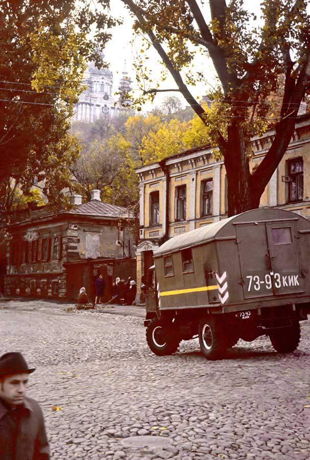 An einem Tag im Oktober 1975 ging ich den Andriyivskyy-Abstieg (Андріївський узвіз) auf und ab ... (beim Besuch von Prof. Paulin Wojtyna und mir aus der Akademie der Bildenden Künste in Krakau an der Nationalen Akademie der Bildenden Künste und Architektur in Kiew. Unsere Führerin war Kunsthistorikerin Anna Zawarowa). Mikhail Bulgakov lebte hier im Haus Nr. 13. |