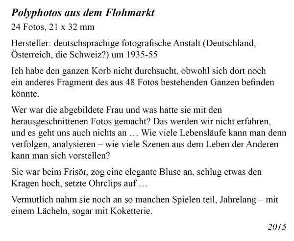 Kim była przedstawiona kobieta i co zrobiła z wybranymi zdjęciami? Nie dowiemy się, a też nie musi nas to obchodzić... Ileż życiorysów można prześledzić, przeanalizować - ileż scen z życia innych sobie wyobrazić? |