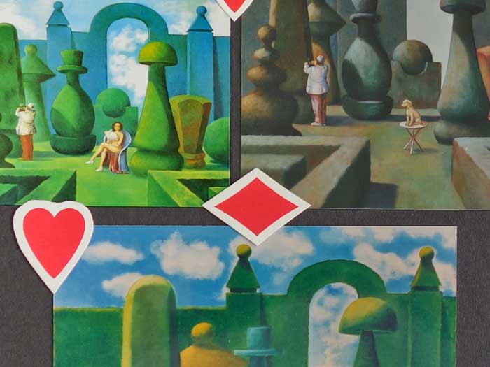 Kiedy ok. 1995 roku planowałam założyć album ze zdjęciami Wojtka obrazów, nie robiłam jeszcze kolaży z kart. Gdy po wielu latach, w 2021, wpadł mi w ręce tamten nieskończony a szybko zapomniany pomysł, z przyjemnością uzupełniłam go niewykorzystanymi kartami. |