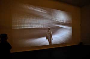 Aus der großen Halle geht es wieder in die Dunkelheit, zuerst in einen Kinosaal. Die Bilder bewegen sich jetzt wirklich, man sieht ein Video-Porträt, das wie eine Zeichnung von van Eeden aussieht, dann ein Computerspiel, als ein Film-Noire-Tatort, in bedrohlichen Zeichnungen inszeniert. Im nächsten Raum wird alles ganz schwarz, man nimmt nur schwach schimmernde Bilder an den Wänden wahr, die Menschen aber, die dort unsicher wandeln, nicht. Der letzte Raum ist eine enge Schleuse, die zum Außenwelt führt. Man wacht aus dem Traum auf.